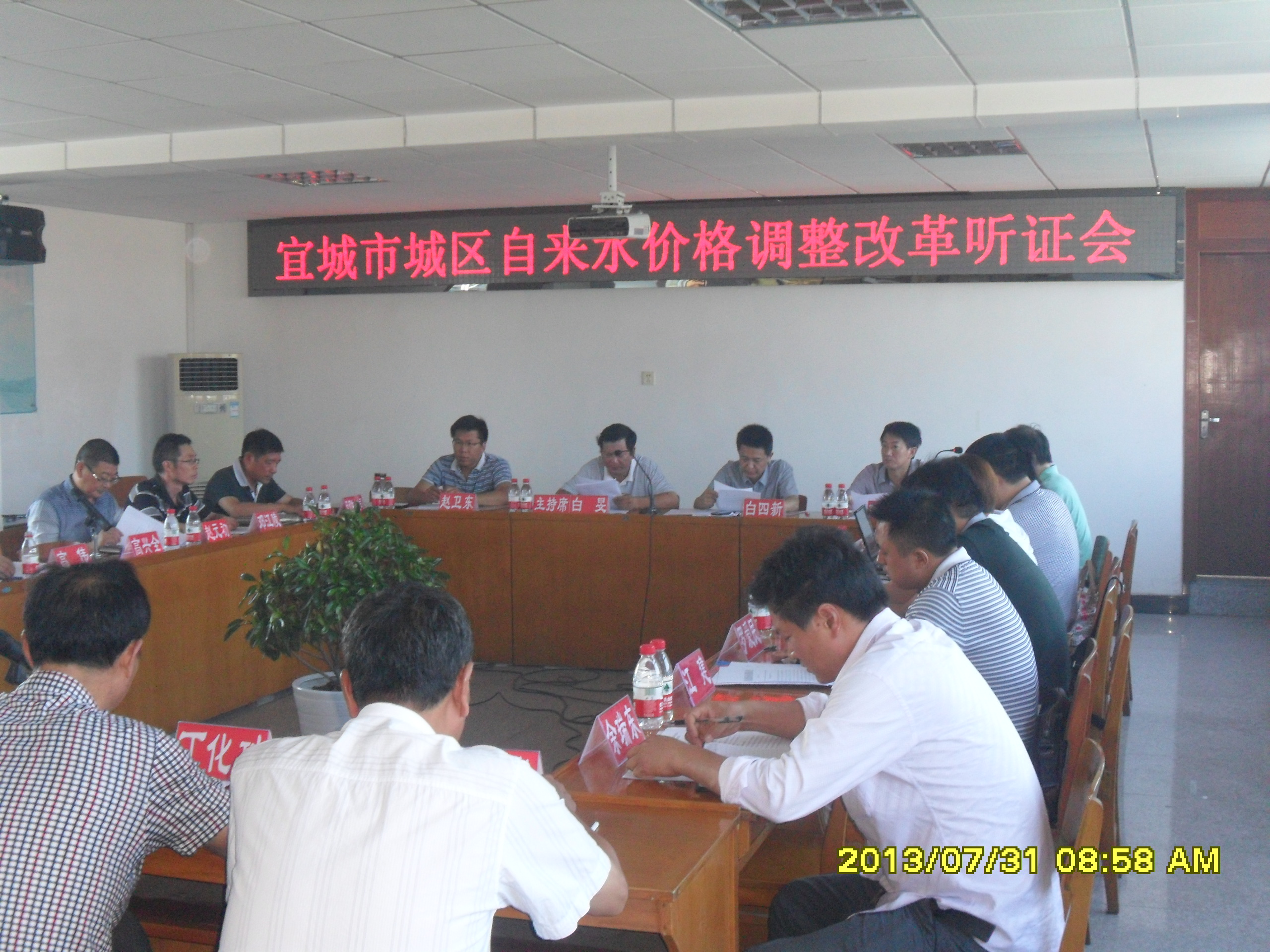 731上午,宜城市城区供水价格调整改革听证会在宜城市物价局召开,会议由物价局局长白旻同志主持,市人大代表、政协委员、消费者及经营者代表、经济、法律专家、学者共计17人参加此次会议,此听证会就襄阳水务集团宜城天河供水有限公司申请调整自来水价格的报告进行公开听证,听取社会各方面的意见和建议。