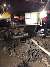 大雨不停地下,抢修工人挑灯夜战,一直到晚上23点左右,深埋地下四米的漏水管道终于被挖出。根据管道实际破损情况,抢修人员立即调整了抢修方案,争分夺秒地连夜抢修,终于在18日上午十点抢修完毕,将现场淤泥铲除清洗干净并恢复供水。而奋战了一整夜的师傅们,此时已在抢修车上睡着了,短暂的休息后,他们还要奔赴下一个工地。