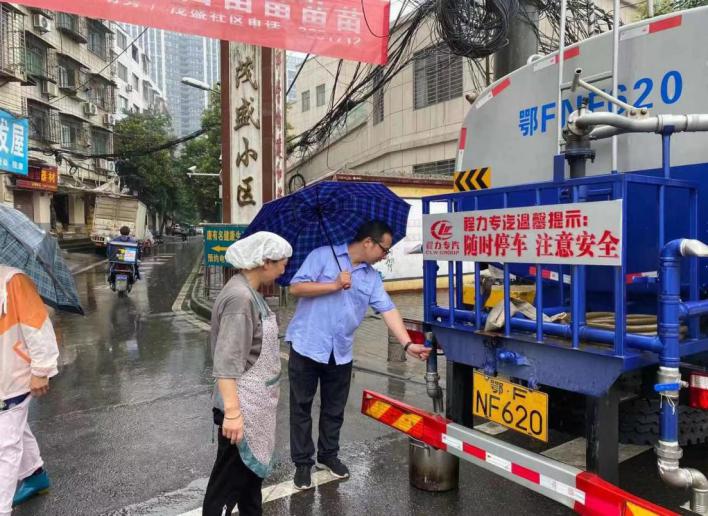 为保障群众正常用水,春园路所所长孔冬斌带领抄表科长易少春、董俊卿和抄表员桂雍联合供水工程公司消防车立刻赶到现场为沿线单位储水箱注水,为居民送水。见到老人和行动不便的人他们主动把水送到家里。雨越下越大,但他们一直坚持给用户接水、送水,一桶桶、一盆盆,一直持续到中午12点。这时,又接到热线反应在建新路茂盛小区也受到影响,已经停水,他们顾不上吃饭,又即刻驱车赶往送水点,下午4点已经向此次受影响的所有居民送去了承载着关爱的自来水。当看到广大居民不再为用水担忧,听到大家的一声声感谢,此刻所有的劳累、饥饿都是值得的。这就是平凡而又朴实的供水人。