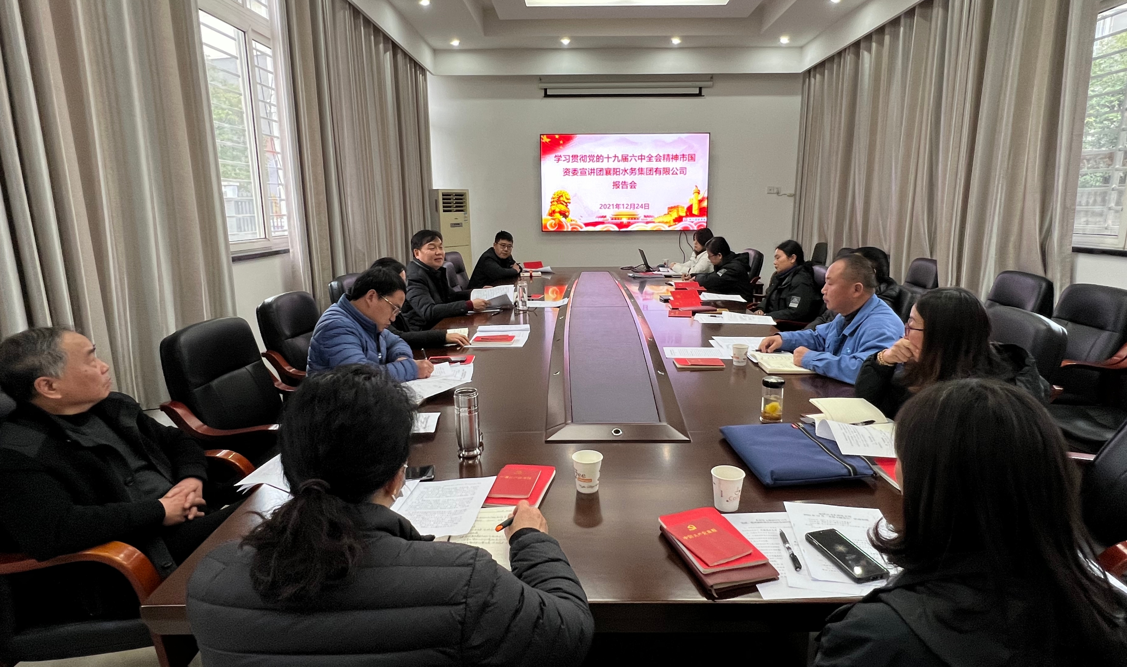 2021年12月24日,党委书记唐建兵于集团公司一楼党员活动室为本部党支部全体党员宣讲了十九届六中全会精神,重点围绕十八大以来党和国家的重大历史成就和历史经验,深刻讲述了中国社会的发展进程与变化,让全体党员感受到了现在生活的来之不易与中国共产党的艰辛与伟大,使支部全体党员进一步认识到为广大用户排忧解难,使老百姓用上安全、放心的自来水,为群众办实事、办好事的民生公益类国企的责任。