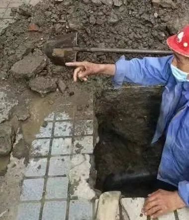 接着报单、通知维修队开挖,“功夫不负有心人”,当维修工作坑挖至地面一下约1米左右的地方,水流上涌,这段DN110的PE管漏点被精准找到维修。看着维修人员停水、维修、恢复供水一气呵成,用户们一颗悬着的心也终于放下。
