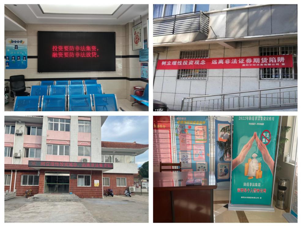 在宣传活动期间,集团本部以及集团参股公司、子公司开展了形式多样的宣传活动。编制了宣传材料,制作宣传教育展板,对非法集资特征、主要表现形式、常用手段及识别方法等进行宣传。襄阳中环公司、宜城天河公司利用营业网点多、涉众面广的优势,在营业所、客服服务中心大厅和办公场所等10余处LED显示屏滚动播放宣传标语,警示社会公众保护自身利益,远离非法集资。并且,组织公司职工关注中国银行保险报微信公众号、参加防范非法集资知识答题赛。