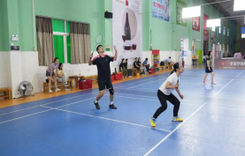 风秋景气爽,健儿竞风流。在羽毛球赛场上的供水人,手握球拍,跳跃、反手、扣杀……赛场上,人影跃动、羽球翻飞,参赛选手们你来我往、挥拍有力,时而大力扣杀,时而飞身扑救,配合默契、尽显活力,比赛现场精彩纷呈。