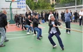 当拔河比赛口令响起,只见参赛的队员们紧握长绳,卯足了劲拼命往后拉,未能上场参赛的候补队友们为自己比赛队友呐喊助威。呐喊声、欢呼声此起彼伏,现场激烈的比赛将整个活动推向了高潮。