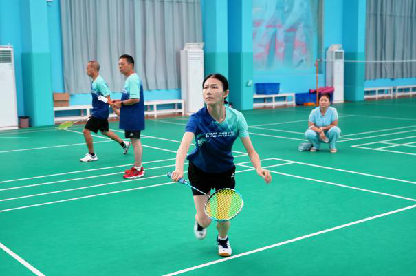 羽毛球场上,健儿们身手矫健、挥汗如雨,展现了高超的技艺和顽强的拼搏精神。