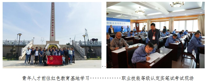 为深化公司青年人才成长工作,水务集团积极为青年人才提供“成长沃土”,立足“提质强能”,搭建多层次多领域专业实训与技能学习平台,制定“全员提素”计划,推动青年人才“见题能学”。将学习贯彻习近平新时代中国特色社会主义思想作为首要政治任务,把学习贯彻习近平总书记最新重要讲话和重要指示批示精神作为青年人才教育培训的重要内容,紧扣党和国家重大决策部署、重要会议,加强党的方针政策、党史、社会主义核心价值观等内容学习教育,引导水务集团青年人才用党的创新理论武装头脑、指导实践、推动工作。建立完善“公司、基层单位、班组”的三级培训体系,积极开展“走出去、引进来”双向培训交流,深入开展校企合作,通过邀请专家授课、脱产培训、开展技术交流论坛等形式,培养业务能手,不断提升青年人才政治站位与业务能力。襄阳中环公司于2024年6月取得湖北省人社厅一至五级“水生产处理工”“管工”“水供应服务员”“化学检验员”行业四大工种的职业技能认定企业评价资质,设置考评专家2人、高级考评员2人、考评员11人负责公司职业技能评价培训工作,充分发挥企业在技能人才培养及评价主体中的作用,目前水务集团共有14名干部职工取得水生产处理工技师(二级)证书,25名干部职工通过水生产处理初级工(五级)资格考试。
